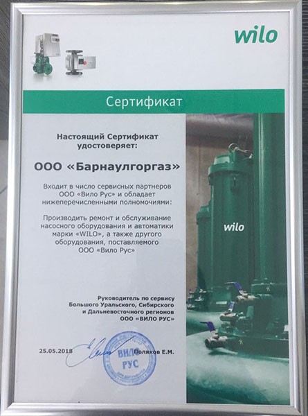 «Барнаулгоргаз» сервисный партнёр компании «Wilo»!