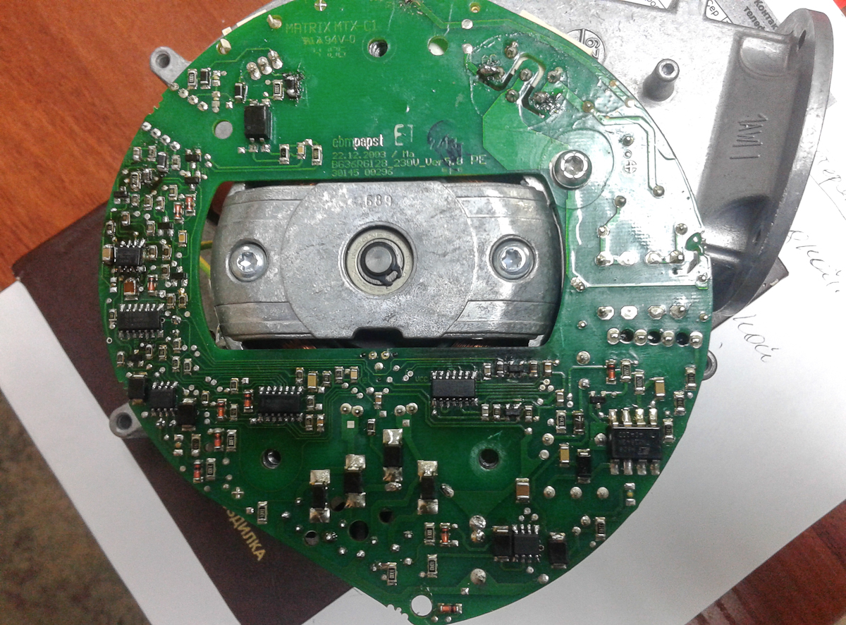 Начальные условия следующие: Конденсационный газовый котел Viessmann Vitodens Неправильно смонтированный дымоход. Попадание конденсата на вентилятор. Сгоревшая плата управления вентилятора. Вывод однозначный: необходима замена вентилятора.