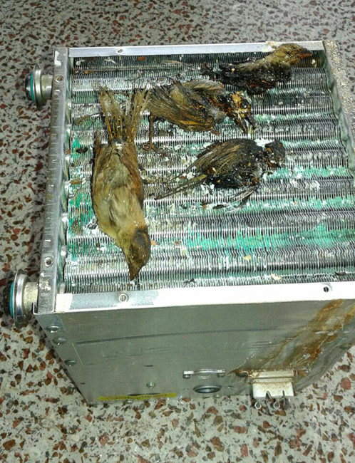 Зимой, во время кратковременной остановки газового котла, в дымоход залетели погреться птицы. К сожалению их, ждала ужасная участь. Пользователь не заметил, что у него в котле птицы. Но это влияет на работу котла. Поэтому очень важно проводить ежегодное ТО поскольку очевидно, что помимо пыли и продуктов сгорания камеру сгорания придётся очищать от иных посторонних предметов.